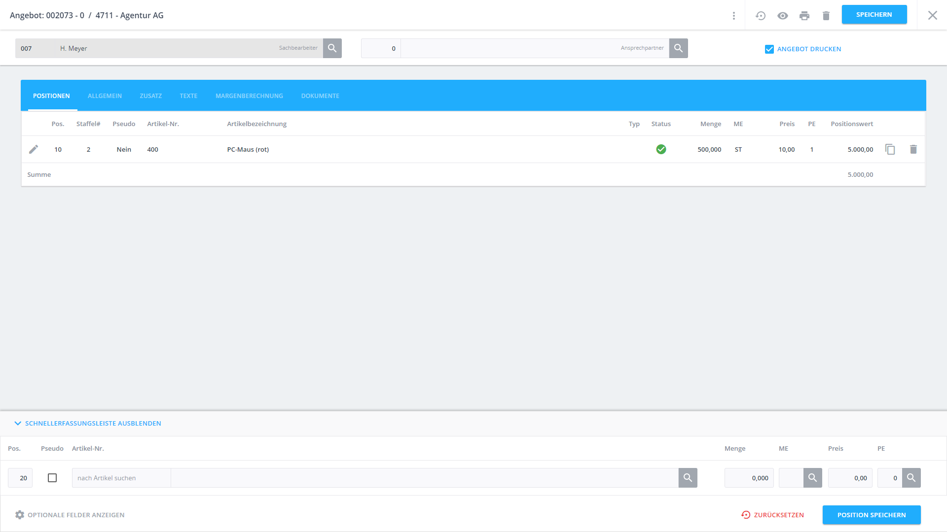 Vom Angebot bis zur Rechnung, alles im Blick mit demand.erp. Durch die Vernetzung aller Module erhalten Sie alle erforderlichen Informationen wie z.B.: Stammdaten, Bestände, Kundeninformationen, Ressourcen und Fertigungskapazitäten. Dabei sparen Sie Zeit und halten beim Auftrag, was Sie im Angebot versprechen.