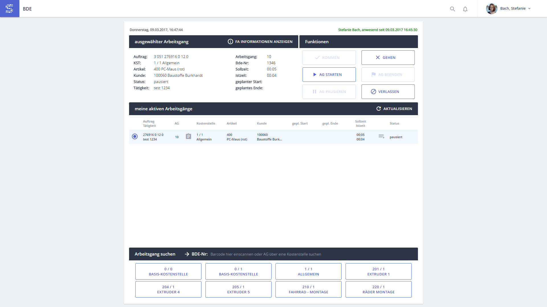 Mit demand.erp BDE werden alle wichtigen Produktionsdaten, zeitaktuell am Ort des Geschehens erfasst, verarbeitet und bei Bedarf auch ausgewertet. Ein optionales Informationssystem bietet die Möglichkeit, alle wichtigen Produktions-, Qualitäts- und Kalkulationsdaten zeitnah einzusehen, auszuwerten und weiterzuverarbeiten.