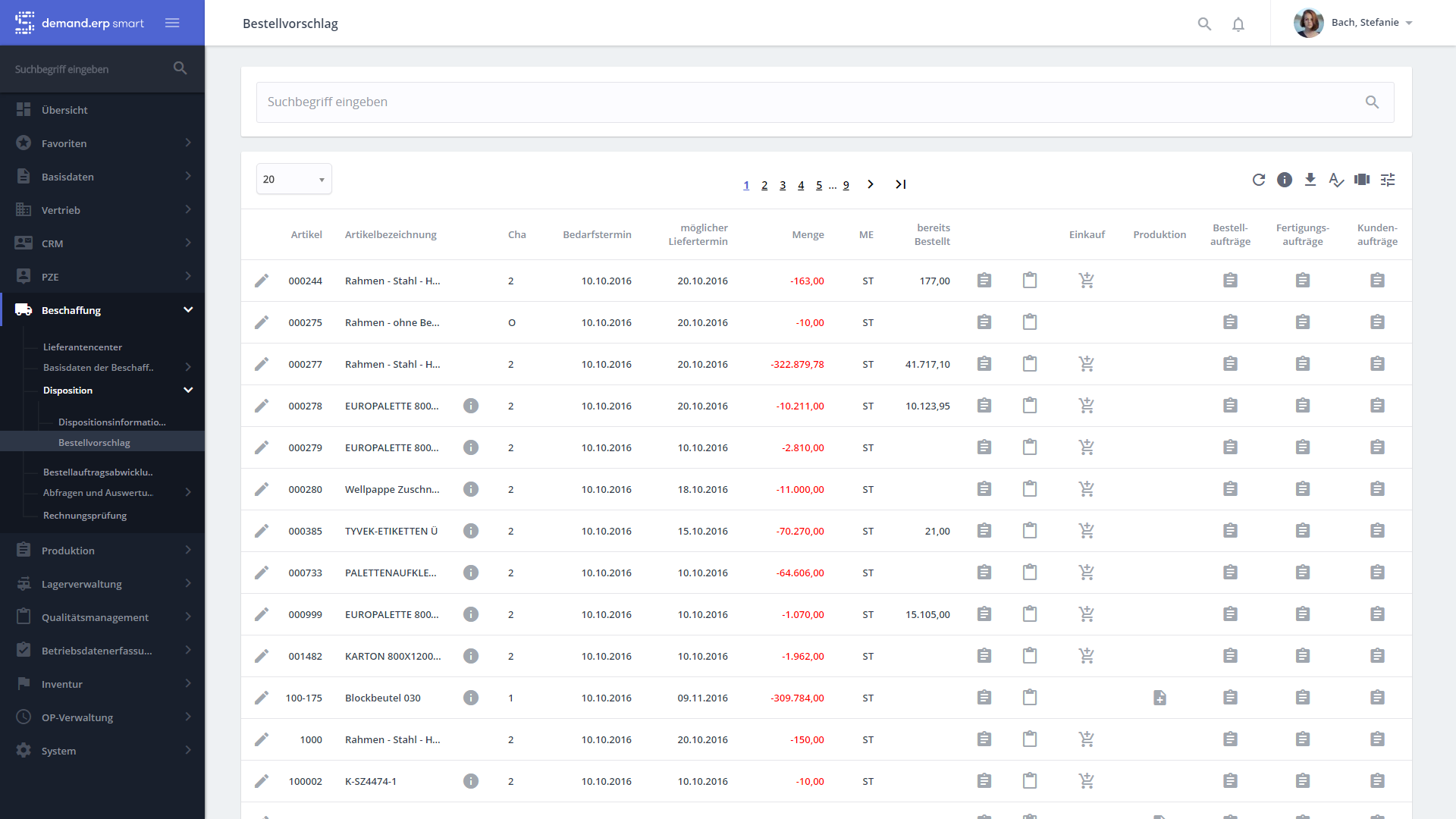 Die Disposition steht neben der BDE für Planungssicherheit im Unternehmen. Sie verwaltet und überwacht die Ressourcen und liefert Bestellvorschläge für den Einkauf und die Produktion. Innerhalb der Materialwirtschaft ist der Knotenpunkt die Nettobedarfsplanung. Primäres Ziel ist es, das Material auf der Zeitachse termingerecht zu disponieren. Welches Material, zu welcher Zeit, mit welcher Menge verfügbar sein muss.